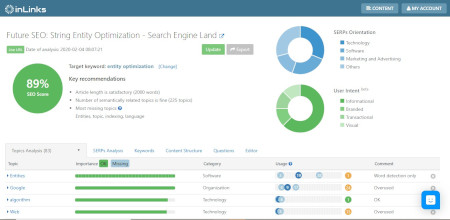 Grâce à son approche basée sur les entités plutôt que sur les mots-clés, InLinks va pouvoir fournir de nombreuses données directement exploitables, notamment :